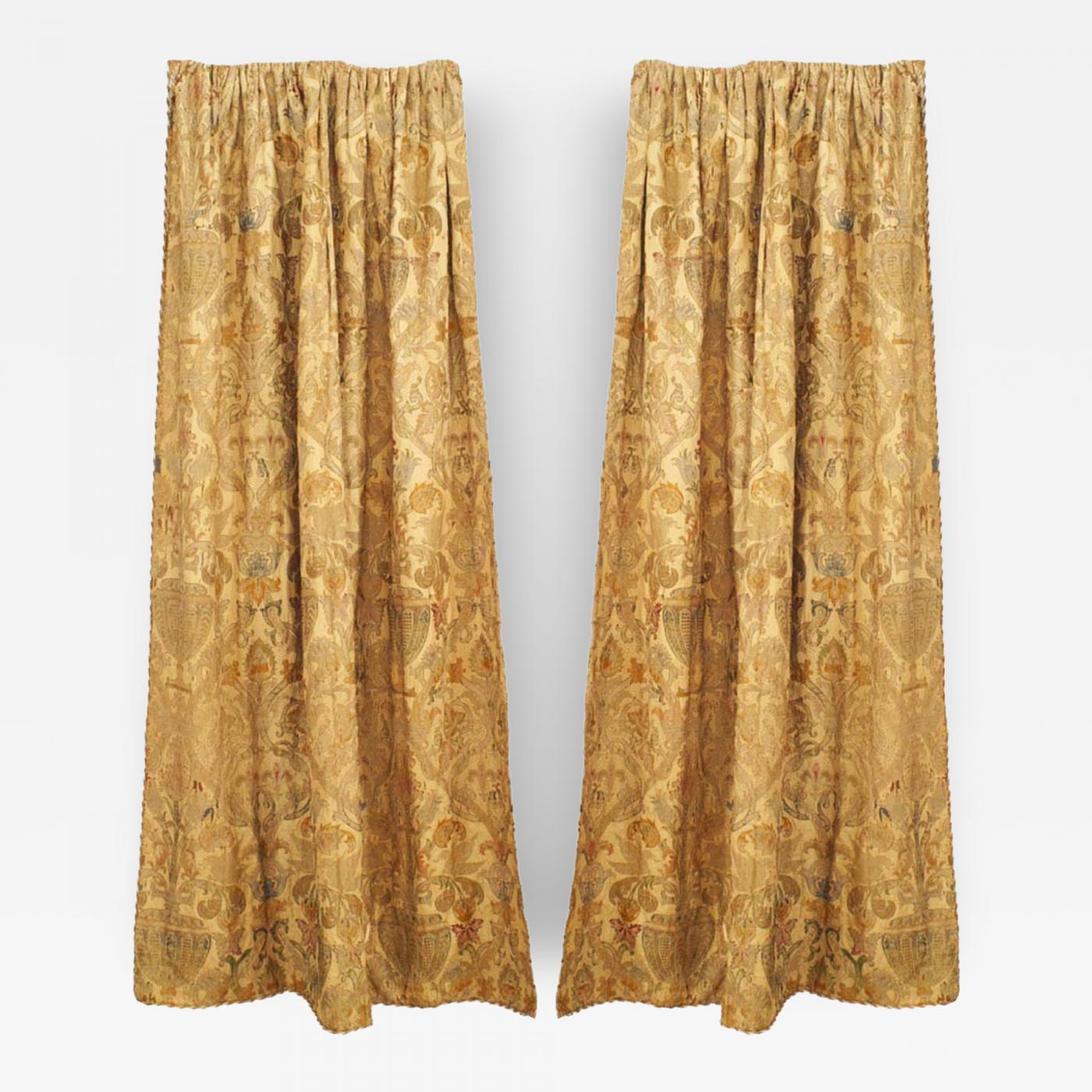 PAIR of silk and metallic thread drapes embroidered with urn design (PRICED AS PAIR).