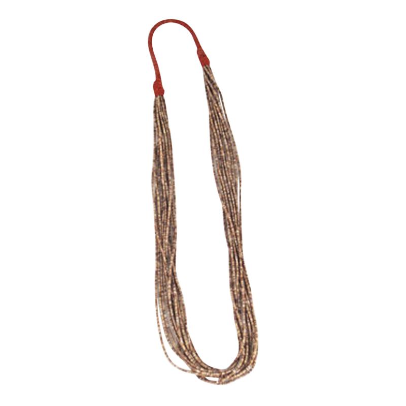The term "heishi" refers to shell beads that are strung into a necklace. The shells in this necklace were hand-drilled and ground into very finely shaped and even-sized disks. Strung together and tied off in a traditional way, the necklace has a silky feel.