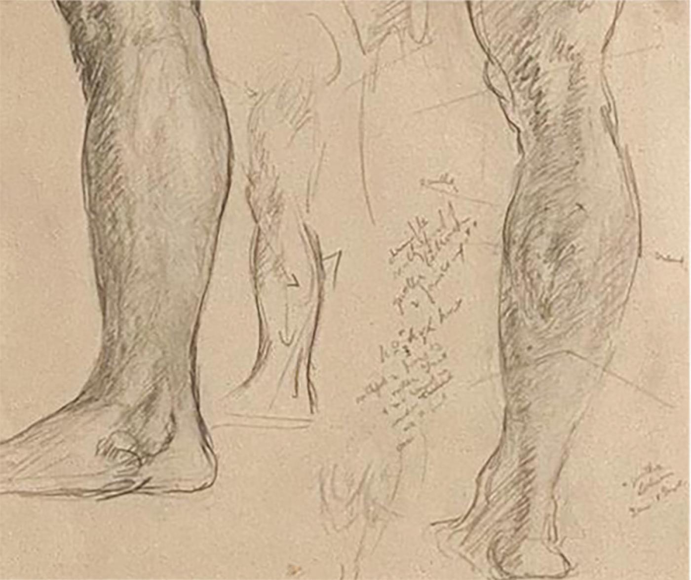 Circa 1920 Pencil Sketch of Legs, Probably USA
