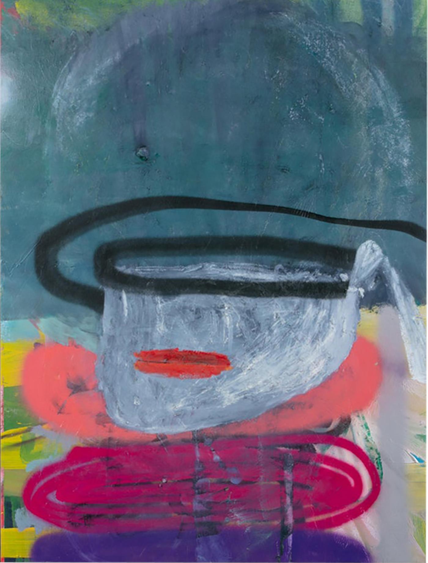 Quiet Please was developed through an intuitive process of layering and expressive mark-making. Marksbury’s paintings explore ideas of time and space, the fantastic and mystical, symbolism, and the tension between objective and subjective experience. His use of color and loose brushwork creates an eerie, near-figurative composition.