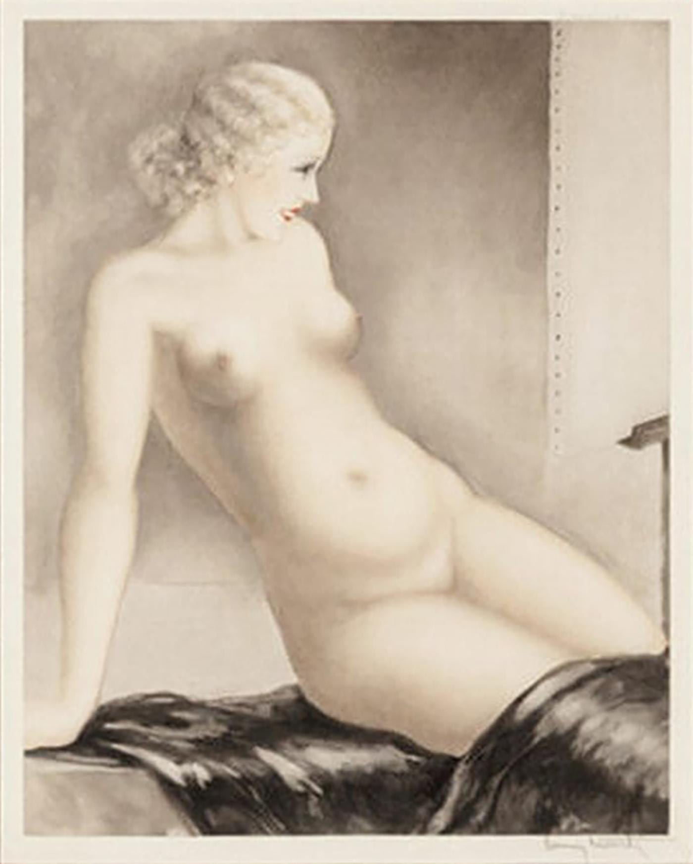 Louis Icart (French, 1888-1950) "My Model," 1933. Etching and aquatint with hand coloring on wove paper. 21-1/4 x 16-1/2 inches (54.0 x 41.9 cm). Signed in pencil on lower right. Artist's chop mark on lower left corner.