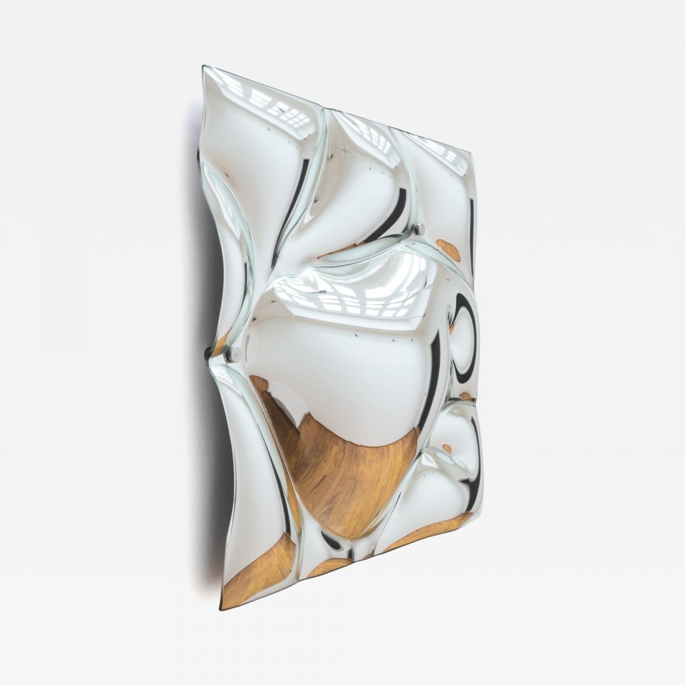 These exquisite wall panels are crafted from slumped, silver-plated glass by Colombian glass artist Luisa Restrepo.