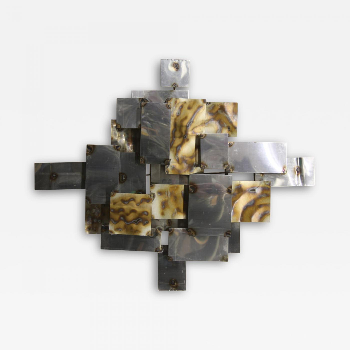 Pleased to offer this great Mid Century Modern wall art. Piece is made up of nails and metal panels. This unsigned piece is in the manner of Curtis Jere.