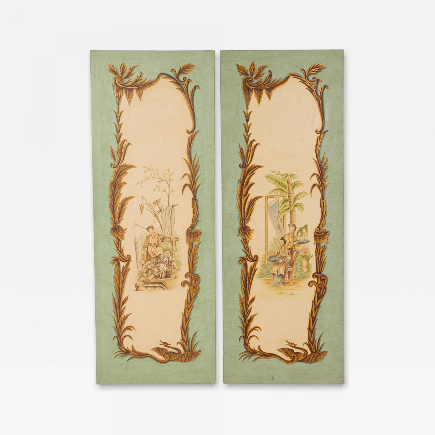 Pair of Louis XV Celadon Chinoiserie Genre Scenes