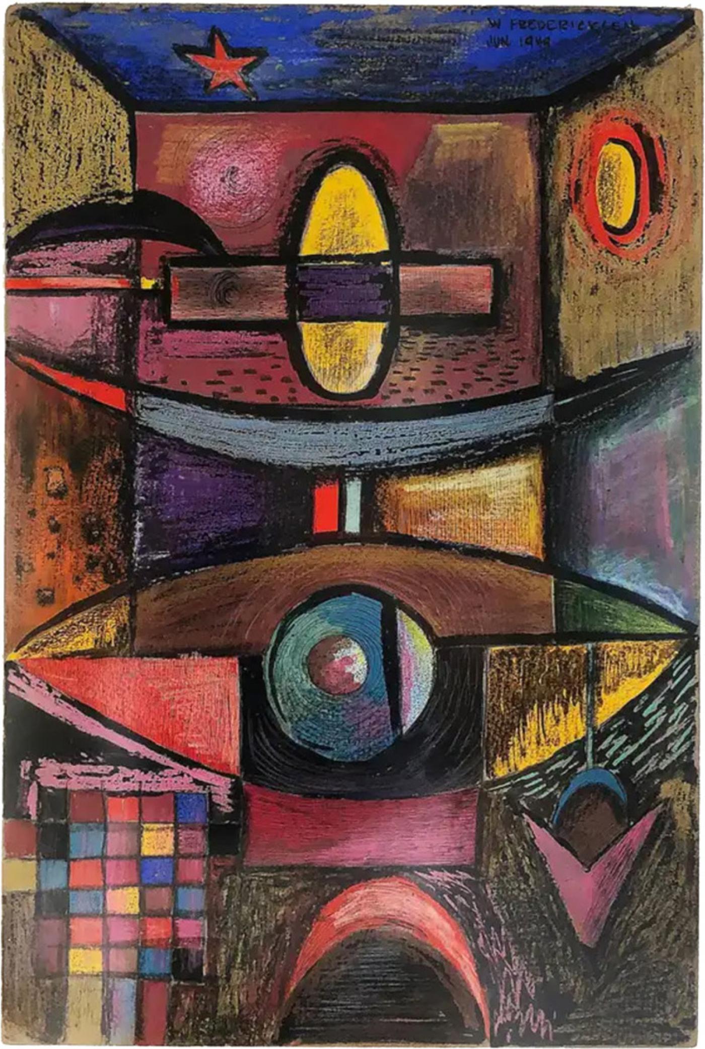1949 W. Fredericks Abstract Cubist Pastel Drawing
