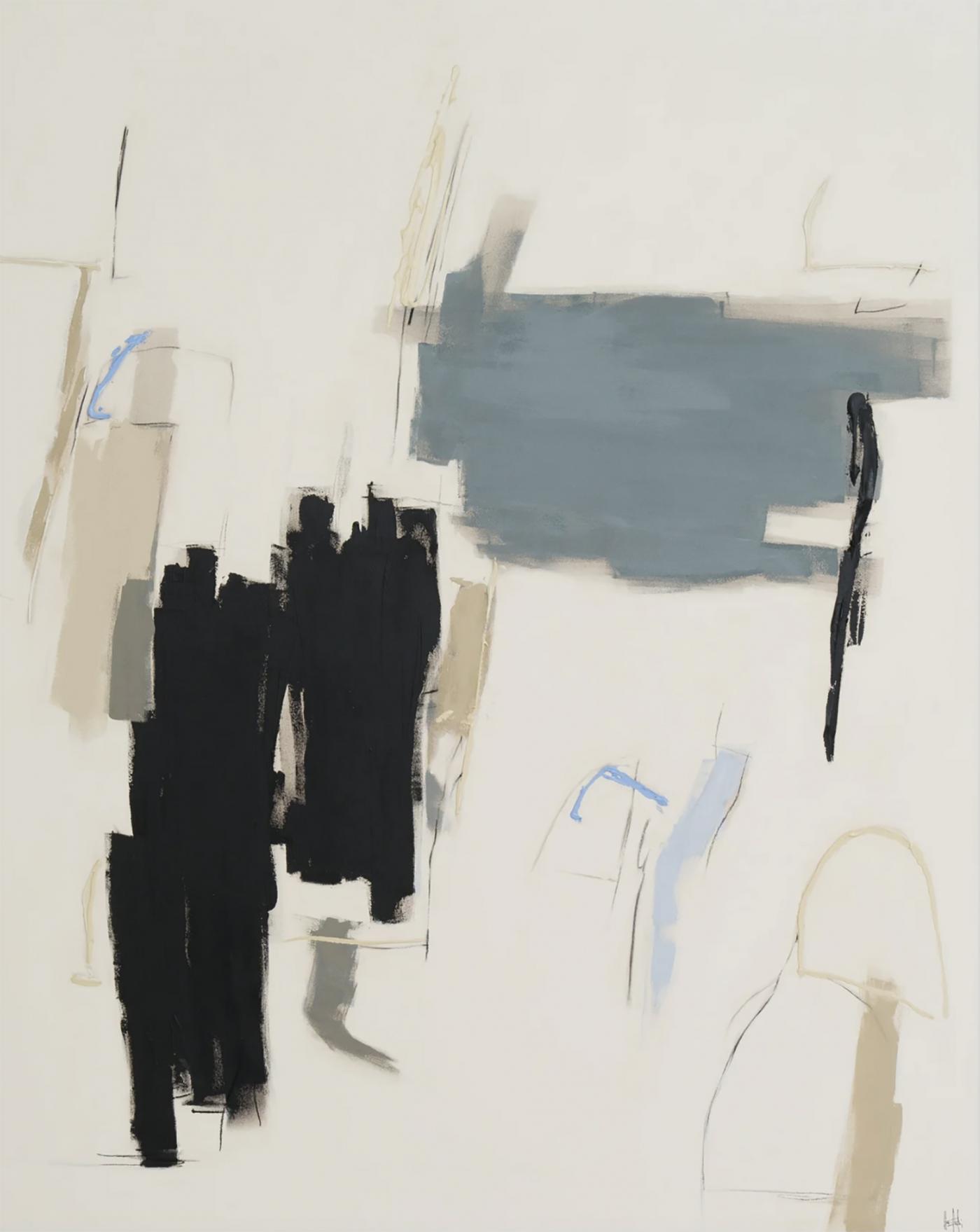 Holly Addi's "Horizon D'Ete" embodies painterly gesture first popularized in the Abstract Expressionist movement. By using a combination of acrylic paint and charcoal, her work is highly active and has moments of sculptural build on her canvases. Pops of color guide the viewer throughout the painting.