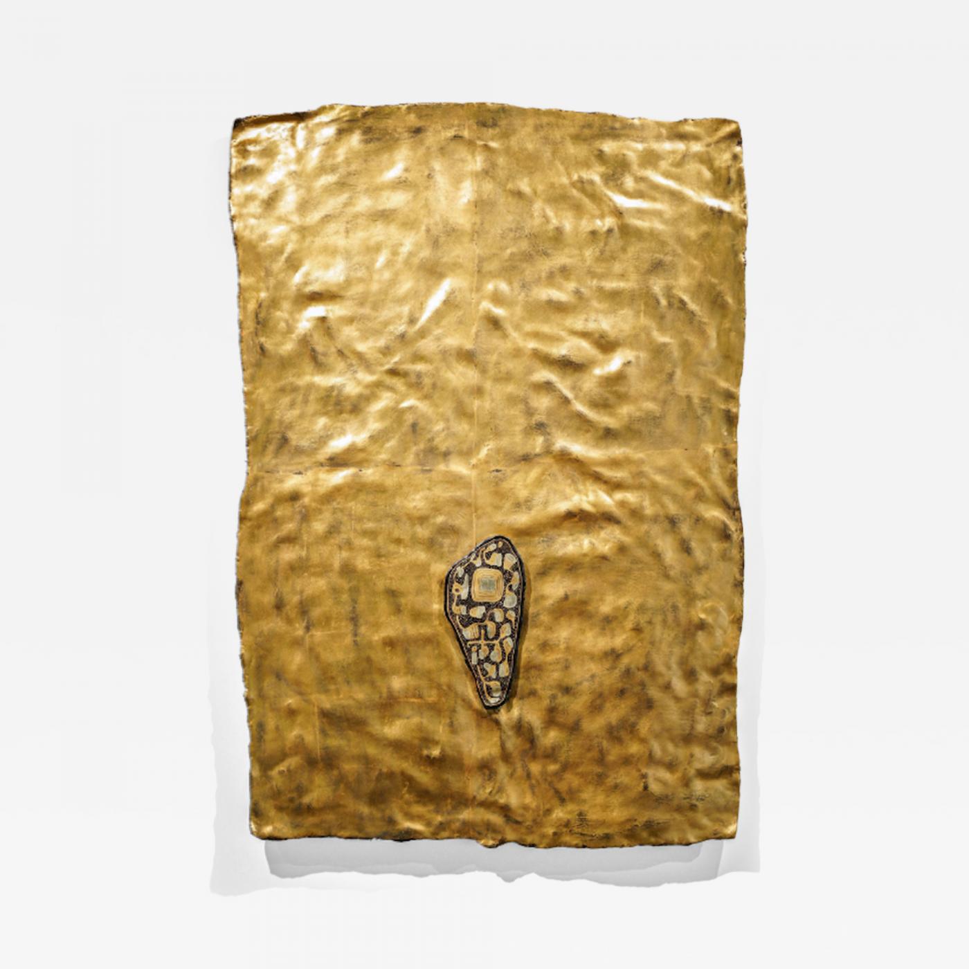 Chinese lacquer, old rice bag, tile powder, gold leaves