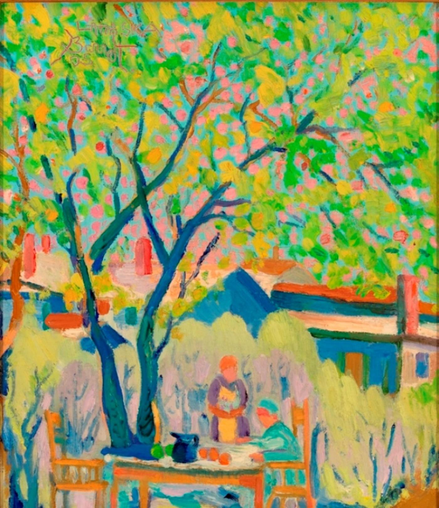 Joseph Barrett was born in Midland, North Carolina, in 1936 and studied at the Massachusetts College of Art in Boston and at the Tyler School of Art in Philadelphia. Barrett, now of Lahaska, Pennsylvania, has been painting his entire adult life. His favorite subjects include the landscape surrounding New Hope and many local landmarks often encompassing figures into his compositions. Barrett utilizes a heavy impasto and his palette bears similarities to that of Fern Coppedge and George Sotter. Barrett’s paintings are always found in unique and somewhat charming handmade frames designed by the artist and finished in metal leaf.