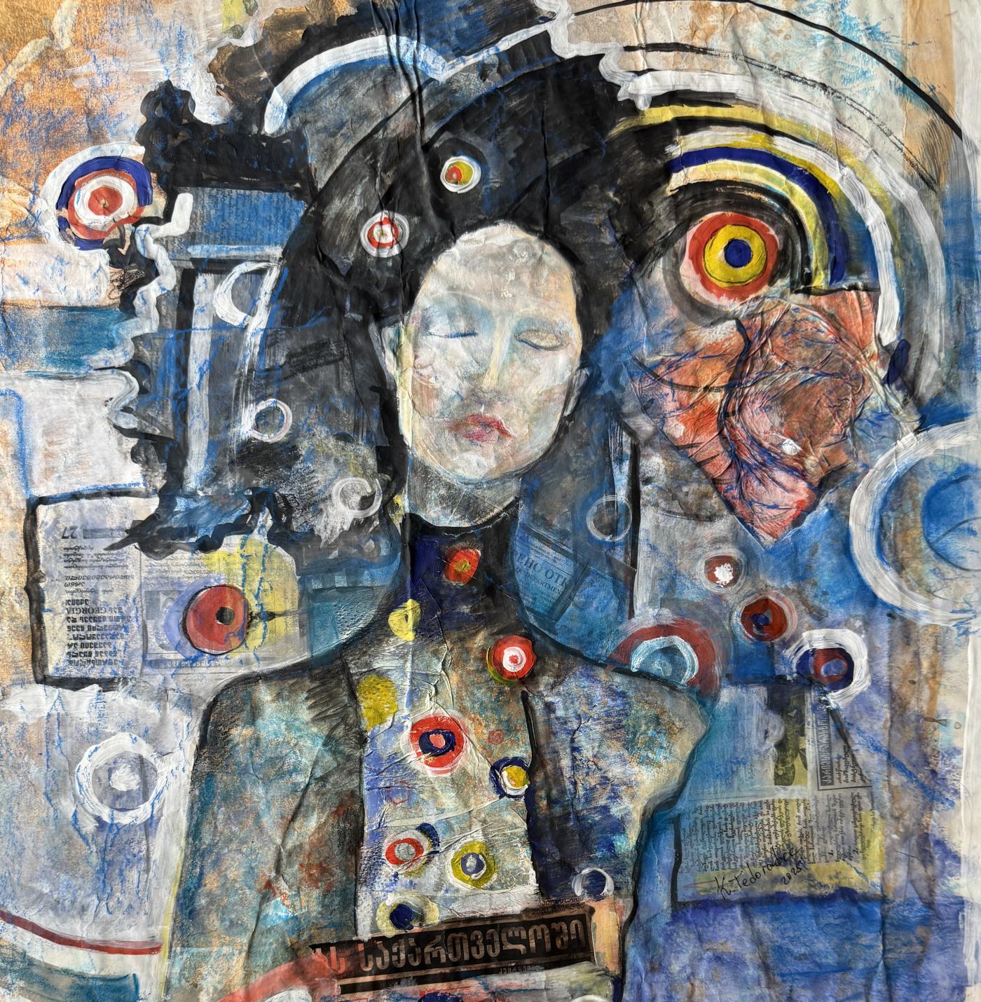 Keti Tedoradze is Georgian artist born in 1968 who lives and works in Tbilisi, Georgia. Her paintings merge figurative and abstract styles, intertwining real human stories with emotions and symbolic forms. She actively creates and teaches fine arts to young students, drawing inspiration from the subtleties of everyday life and journeys into the human inner world. -
