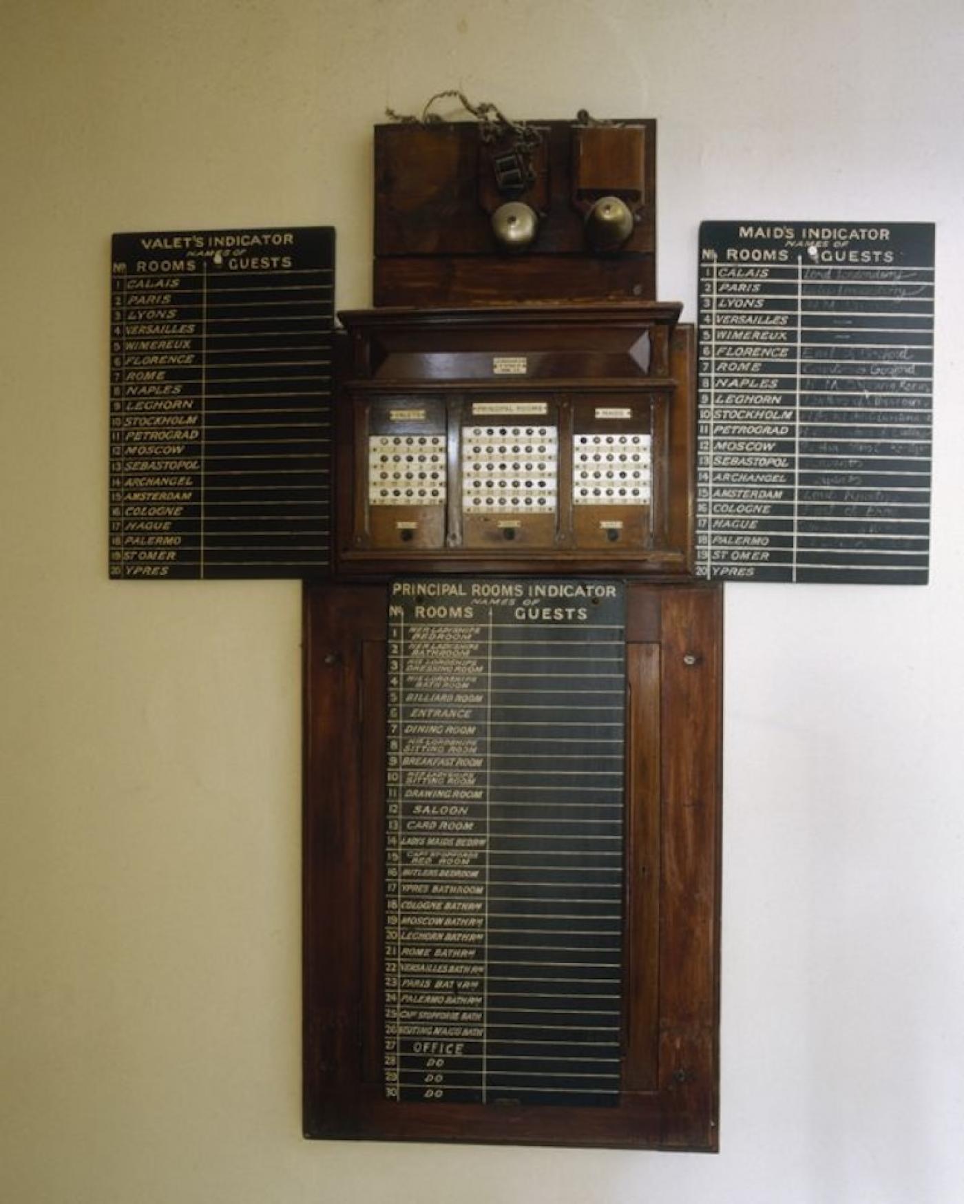 A guest indicator for the maids and valets of Mount Stewart, County Down, 1990s. Amongst the names are owners Lord and Lady Londonderry, and guests the Earl and Countess of Gosford and the Duchess of Abercorn.(Photo By Christopher Simon Sykes)