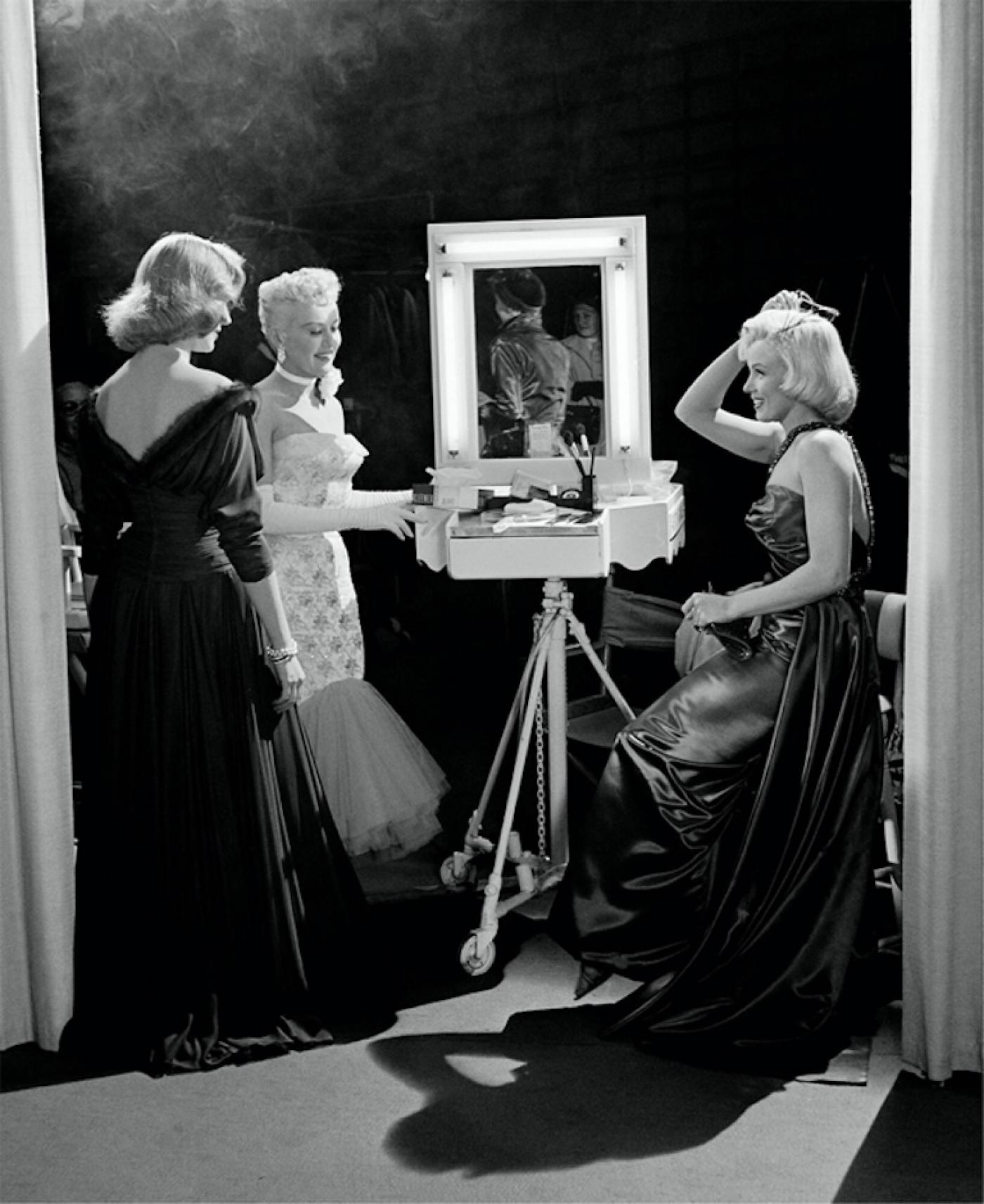 Lauren Bacall, Betty Grable, and Marilyn Monroe behind the scenes of How to Marry a Millionaire.