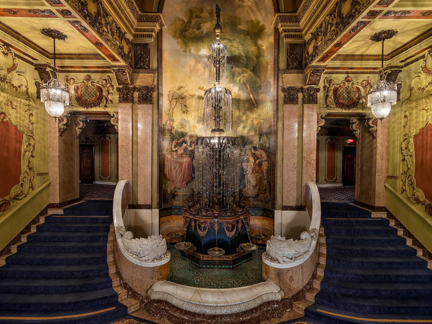 Constructed in 1931 using crystal and marble, this beautiful attraction stands 25 feet tall and still flows with water. In the LA Theatre's heyday, like many picture-palaces from an era before smartphones, TV, modern-day entertainment, abundant distractions, and a multitude of choices, this is where you'd go to see and be seen.