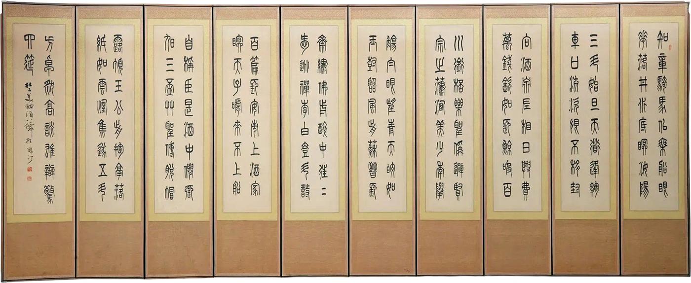 Large Korean Ten-Fold Floor Screen of Chinese Poem in Seal Script by Du Fu