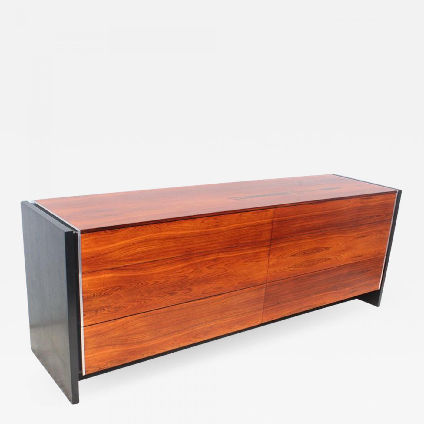 Stunning 1960’s modern Rosewood with black lacquer and Aluminum Hardware Dresser, Designed by Robert Baron for Glenn Of California.