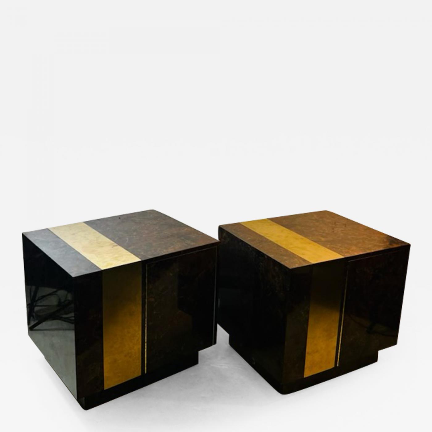 MODERNIST BURLWOOD LAMINATE AND BRASS DESIGN TABLES