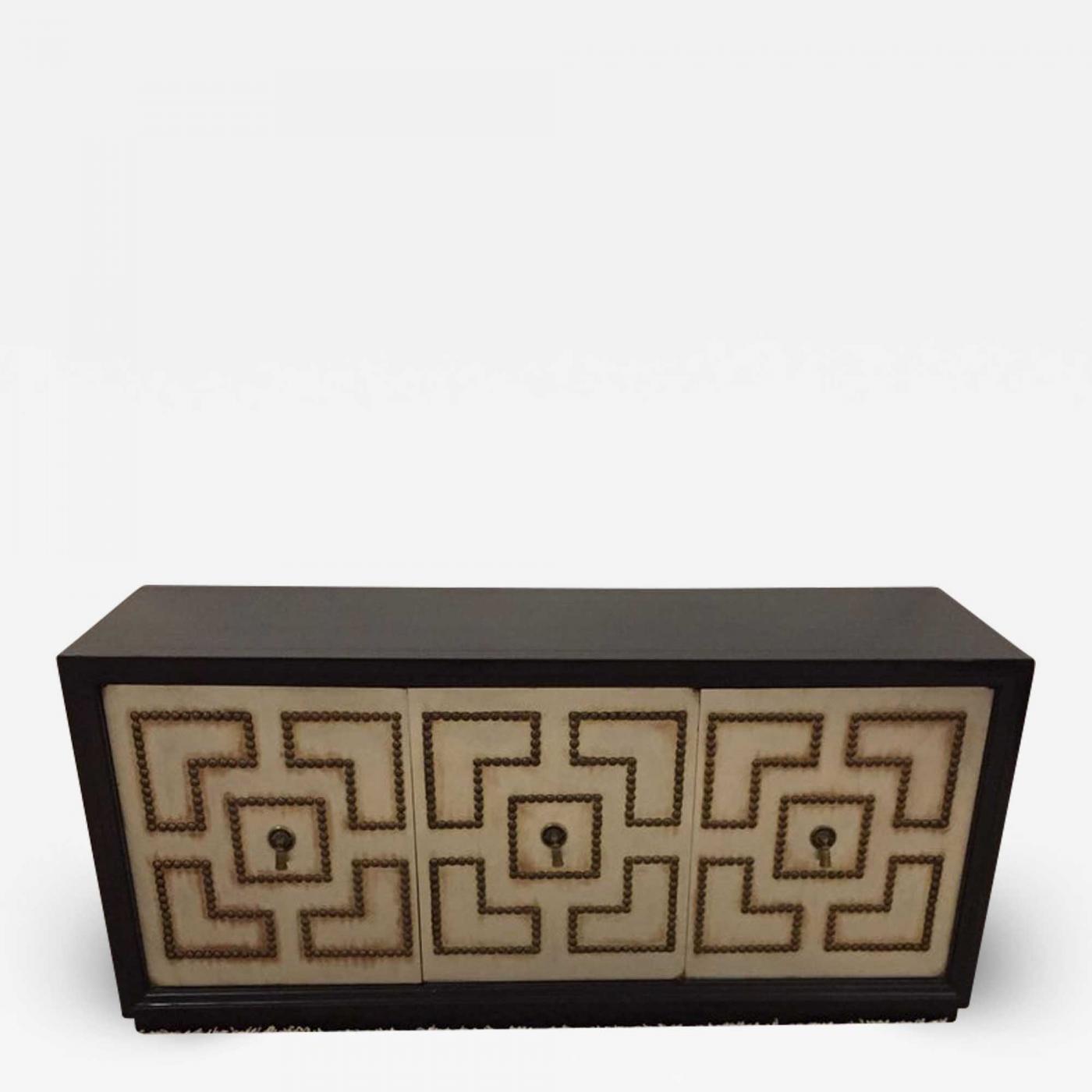 Parzinger Style Hollywood Regency Steel and Bronze Patina Studded Cabinet