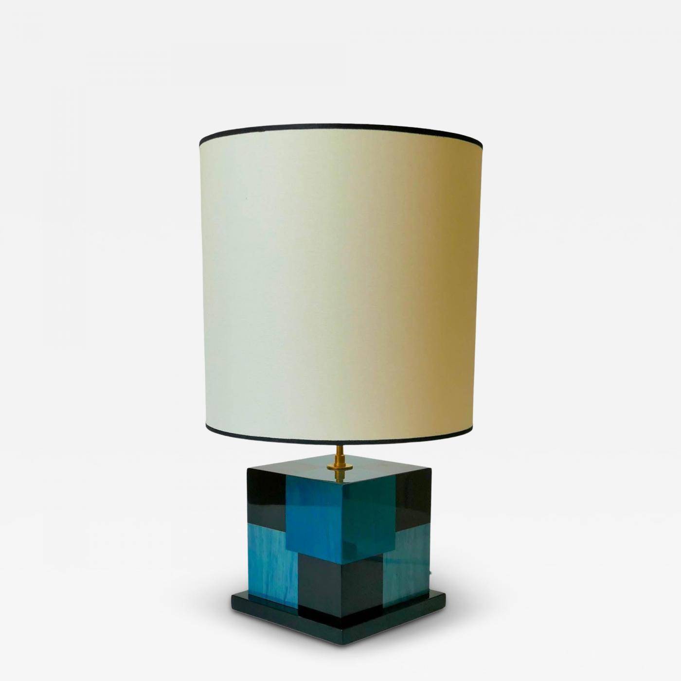 New Black and Blue Table Lamp in Wood Marquetry by Aymeric Lefort