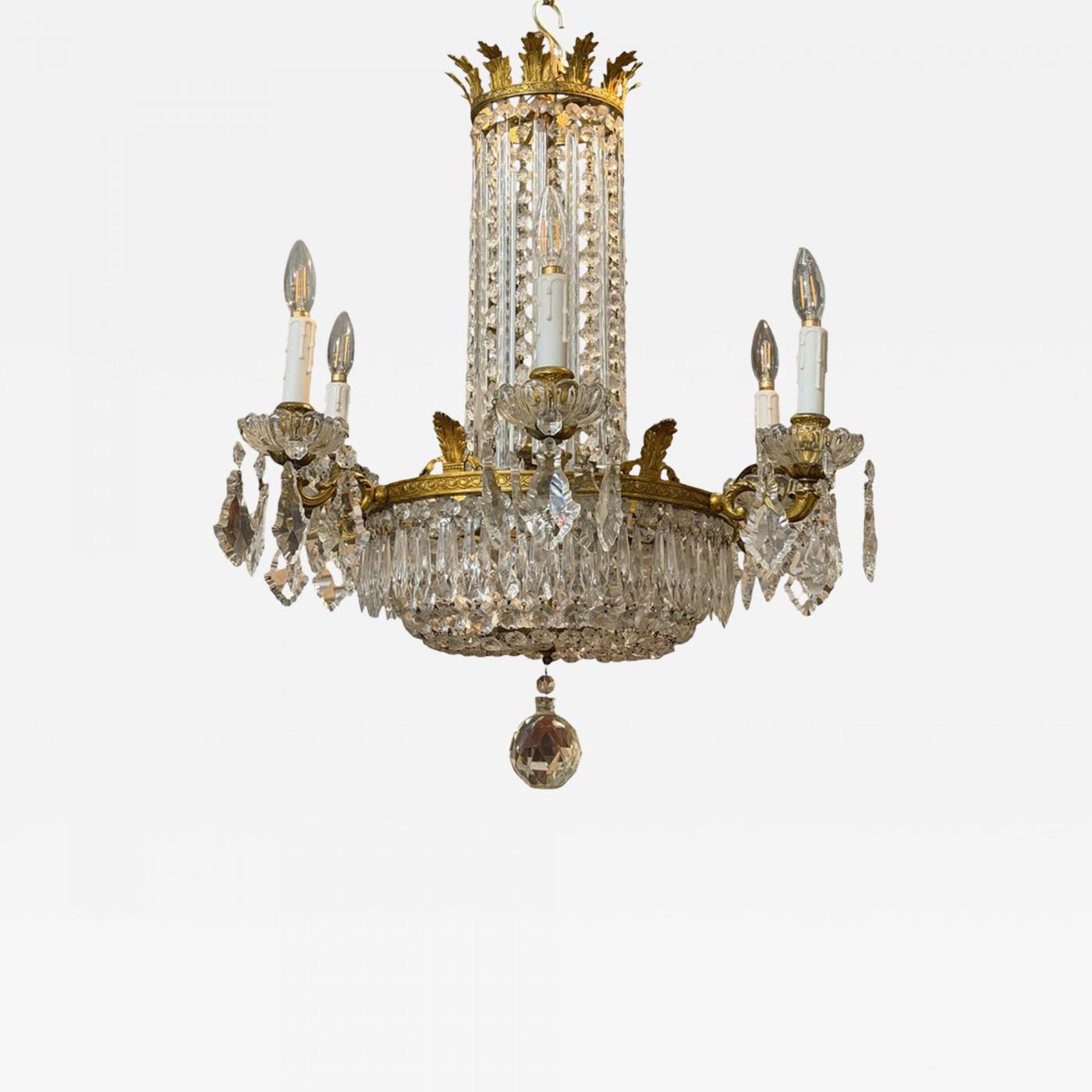 Antique Baccarat Gilt Bronze and French Crystal 6 Lite Chandelier