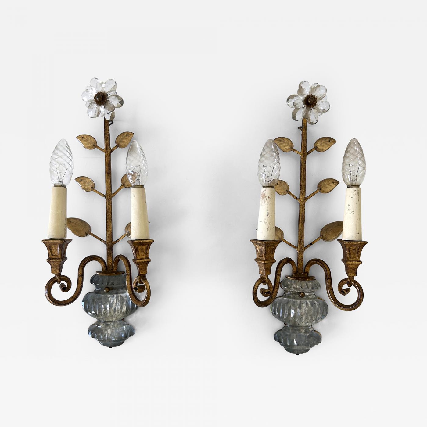 Executed in gilt metal and crystal glass, each lamp needs 2 x E14 / E12 Edison screw fit bulbs. They are wired, in working condition and run both on 110 / 230 volt. Delivery without bulbs.