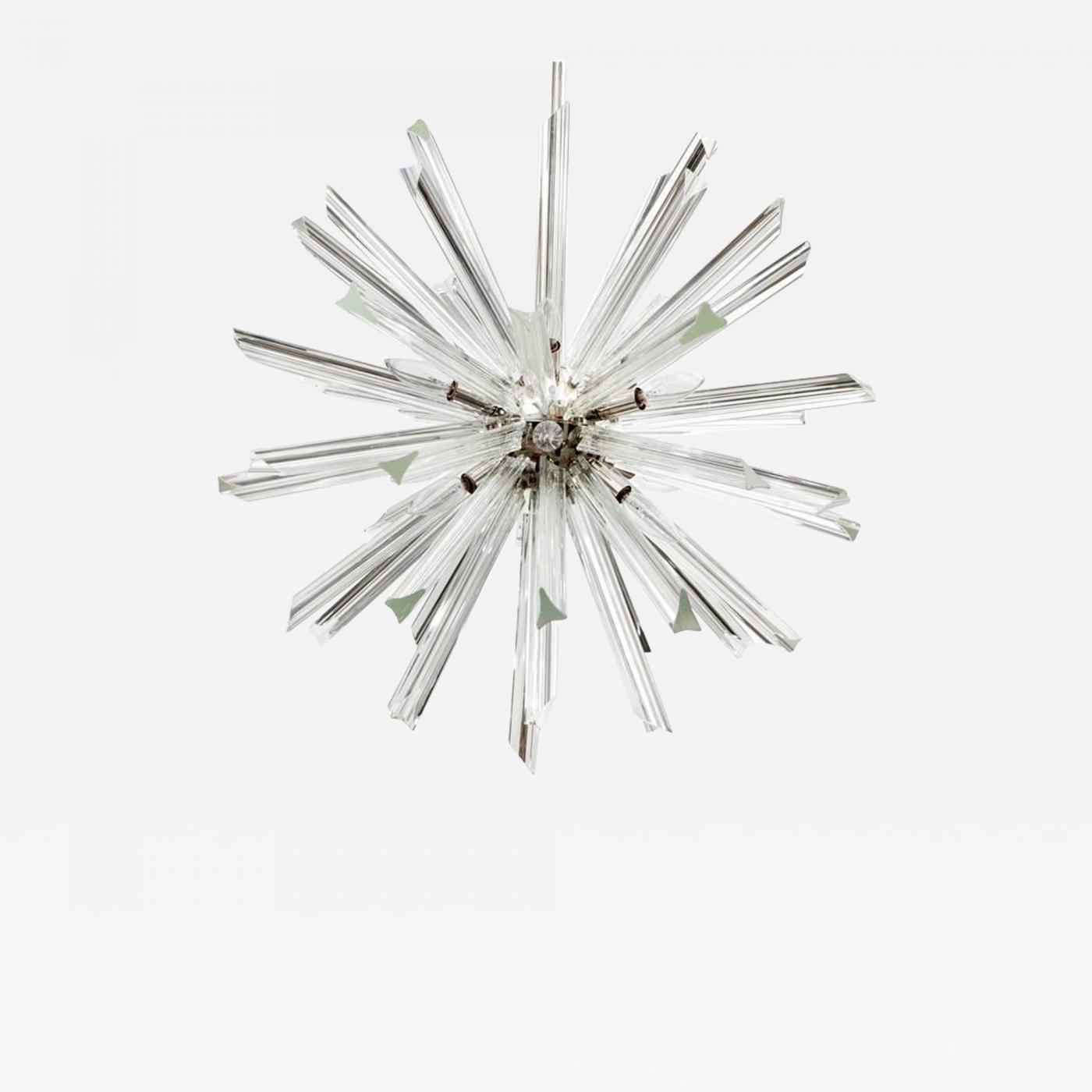 Crystal Sputnik chandelier made from Triedi crystal rods attached to a polished nickel body, stem and canopy. Rewired for use in the USA. Uses candelabra type bulbs 15W -25W.