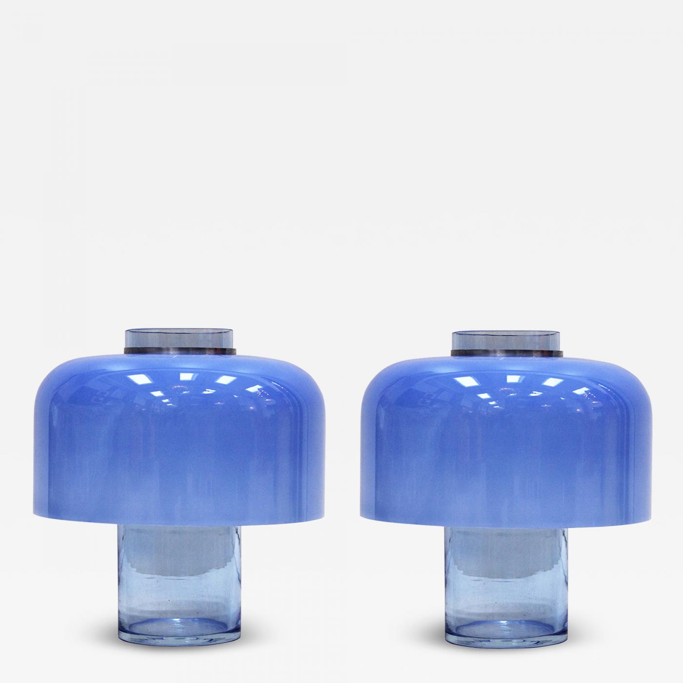 Mid Century Modern Blue Table Lamps Designed by Carlo Nason in Murano Glass