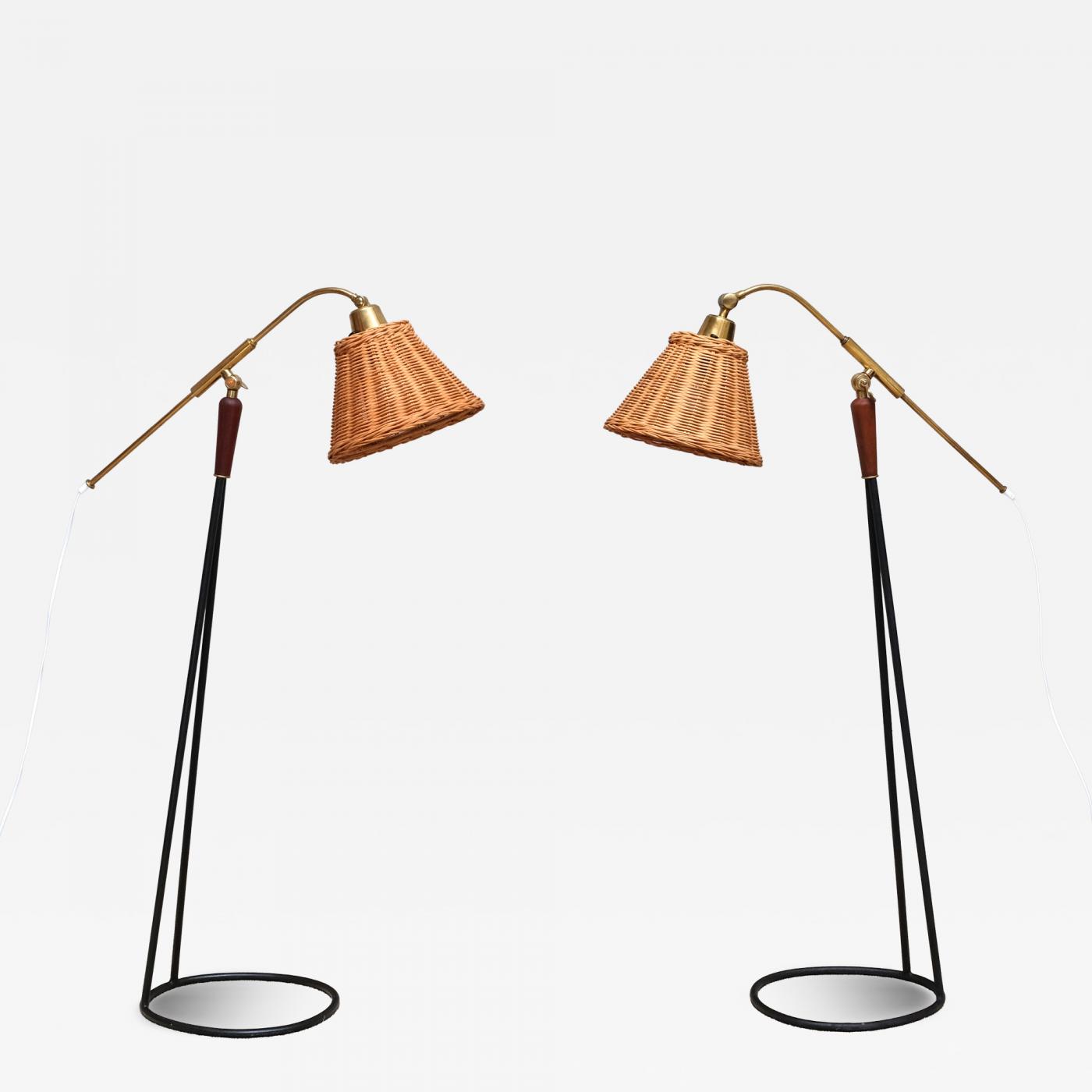 This exceptional pair of floor lamps was produced by Falkenbergs Belysning in Sweden during the 1950s. Each lamp is marked with the manufacturer’s initials, “FLB,” followed by the model number on the brass shade holder.