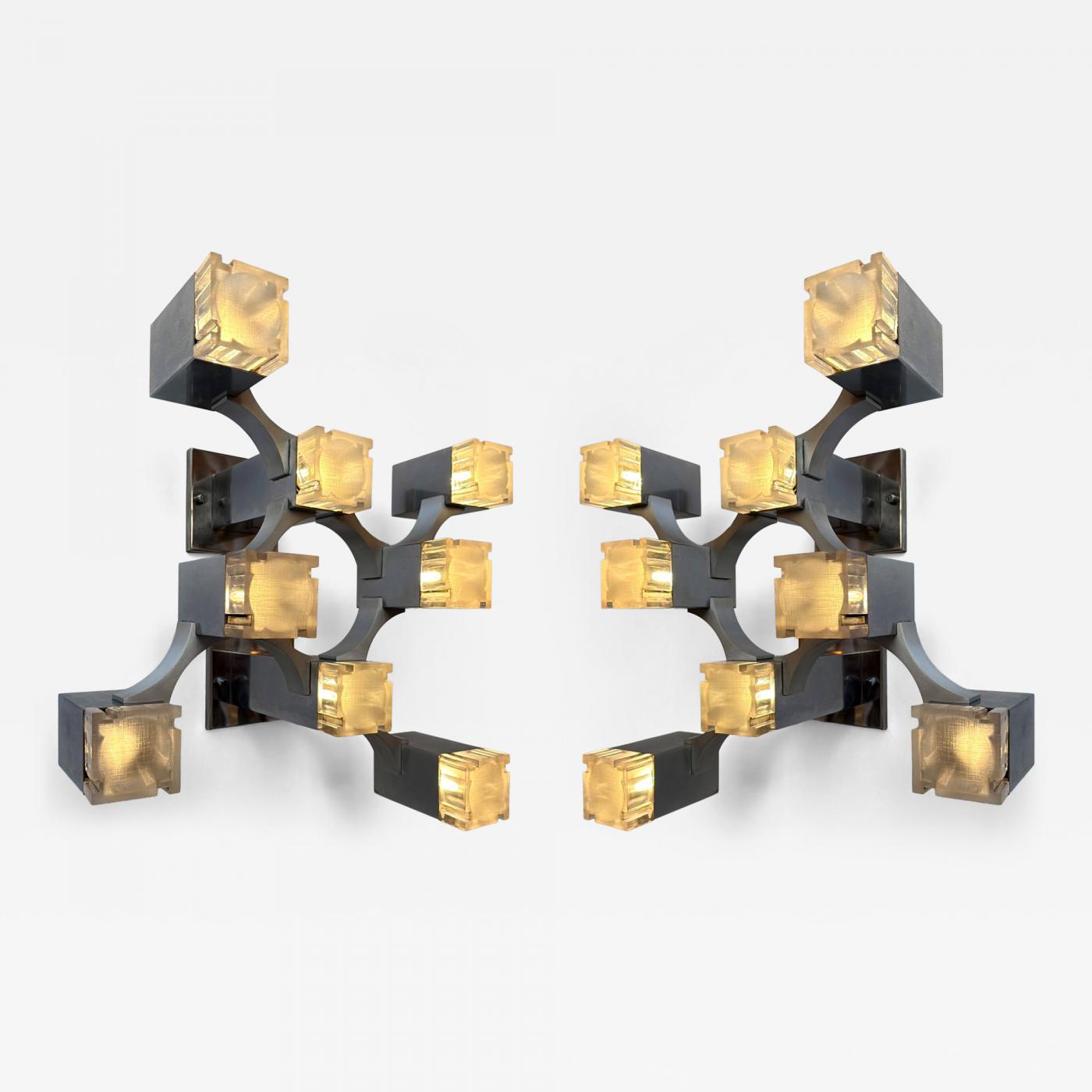 Pair of Sconces Cubic Metal Chrome and Lucite by Sciolari, Italy, 1970s