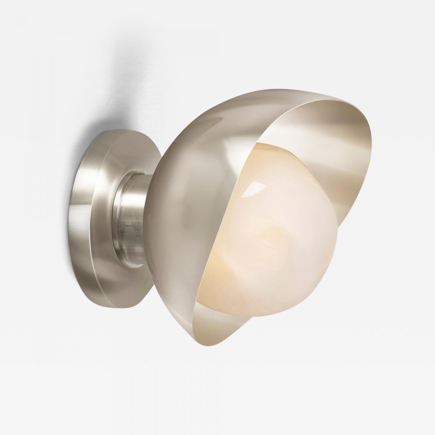 The Perla Mini wall light is the smallest member of the Perla collection featuring an organic brass shell nestling our Sfera glass handblown in Murano. See the Perla and Perla Grande for larger models.