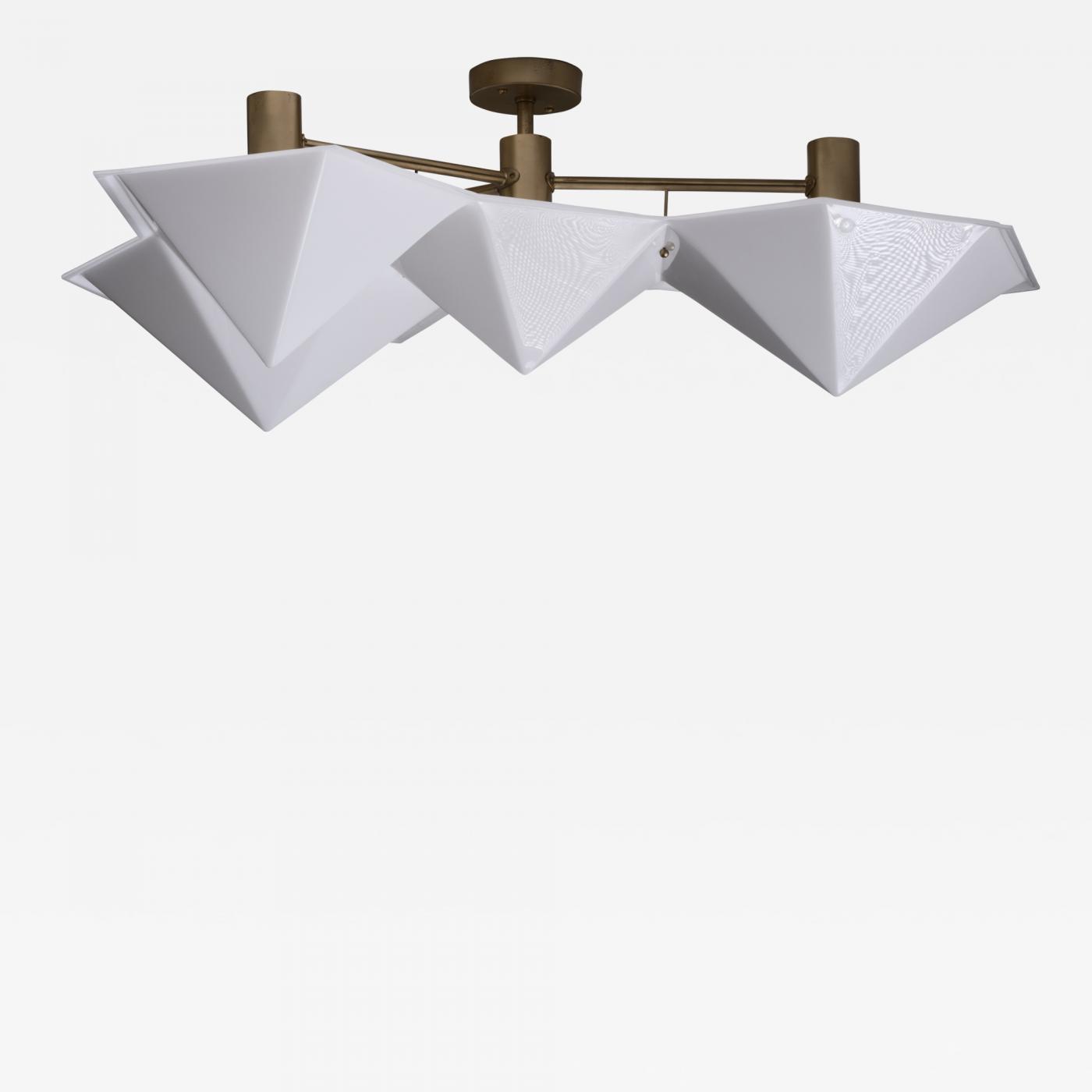 A very rare and large model 'C 1543' ceiling or wall lamp by Hans Bergström for Ateljé Lyktan, Sweden. The lamp has a geometrically shaped plexiglass diffuser and a brass mount with four lights.