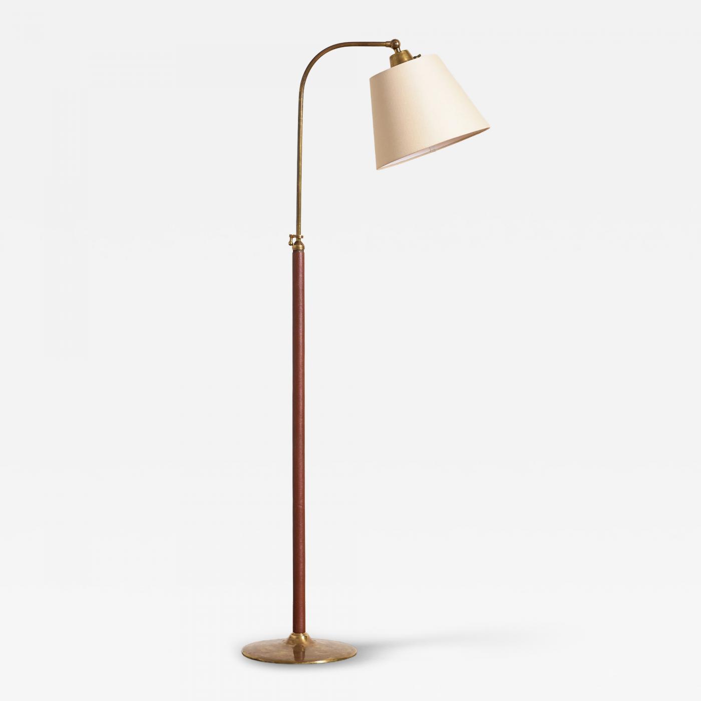 In the Style of: Jacques Adnet Origin: France Period: 1950-1979 Materials: Brass, Leather. Condition: Good. Rewired. Wear consistent with age and use. Creation Date: 1950's Styles / Movements: Modern, Mid Century Incollect Reference #: 827441 -