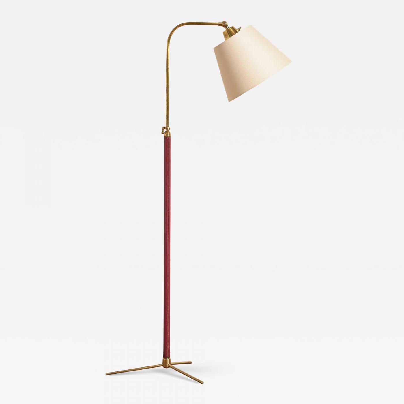 In the Style of: Jacques Adnet Origin: France Period: 1950-1979 Materials: Brass, Leather, Linen. Condition: Good. Rewired. Wear consistent with age and use. Minor losses. Creation Date: 1950's Styles / Movements: Modern, Mid Century Incollect Reference #: 827446 -