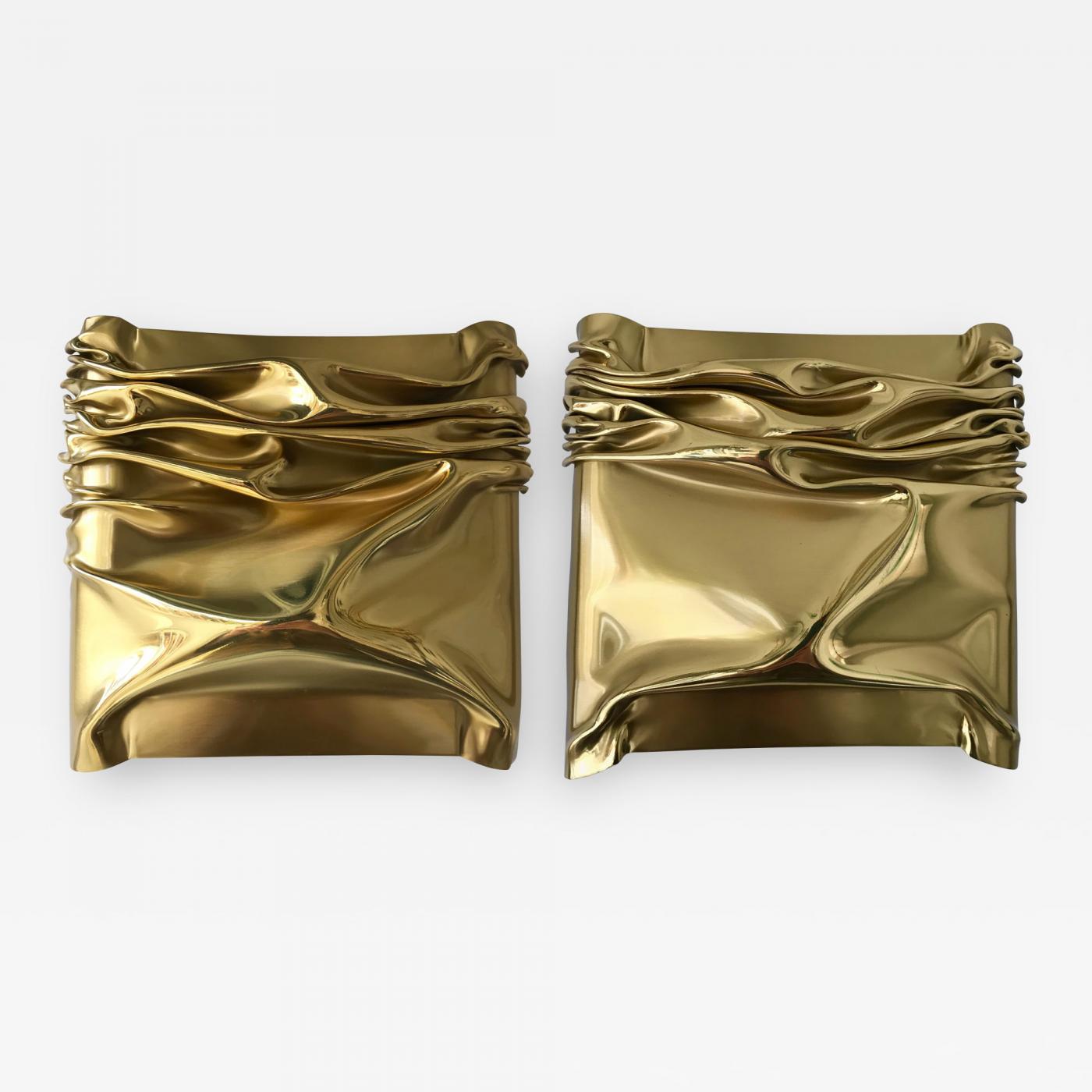 Pair of Brass Compression Sconces by Moniquet for Cheret Paris. France, 1970s