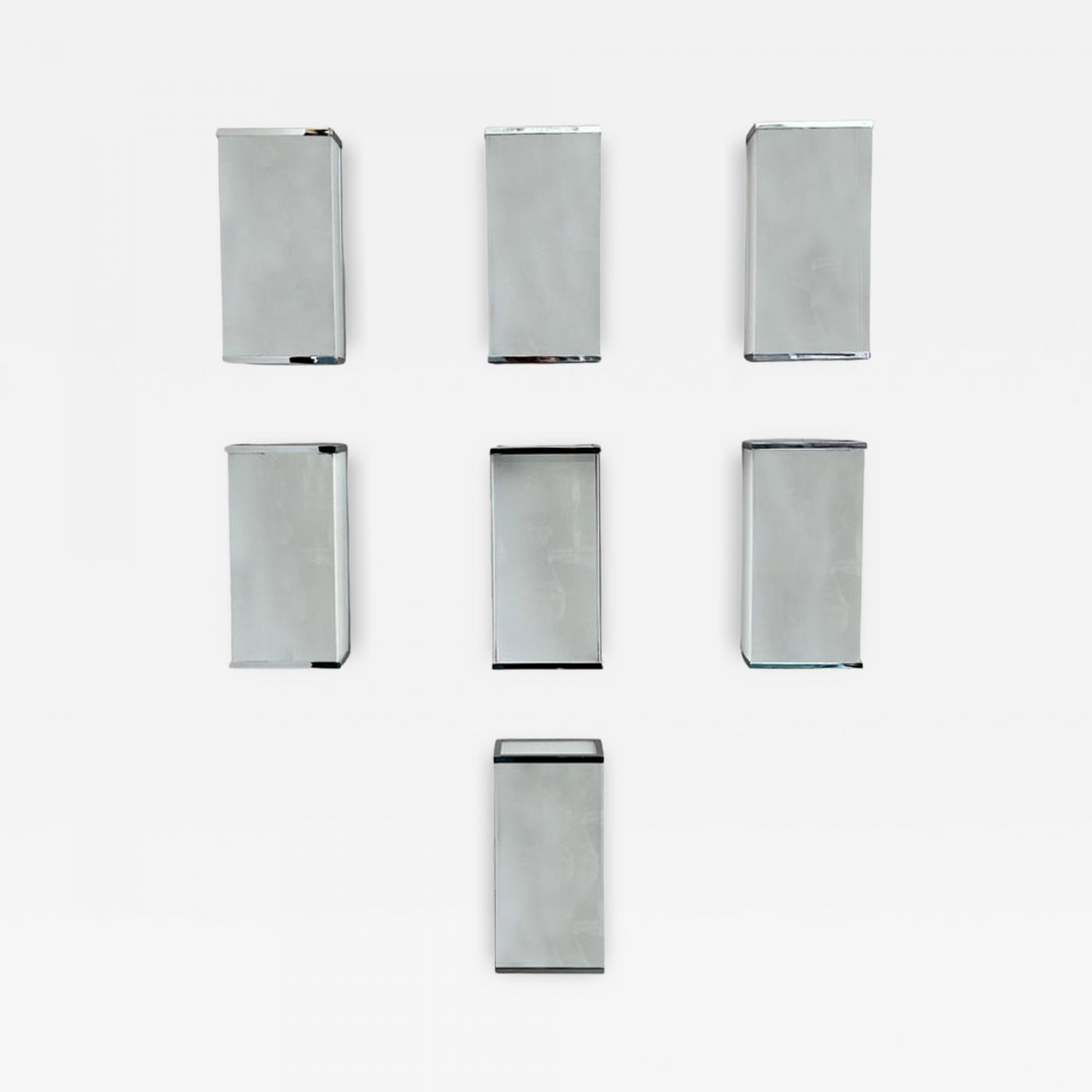 Atelier Jean Perzel - Seven small fine French Art Deco rectangular chrome and white enameled glass ceiling lights.