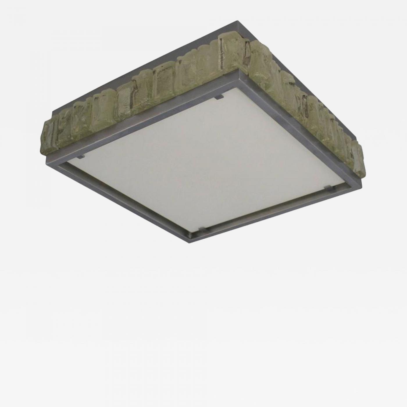 A Fine French Art Deco Square Glass and Chrome Flush Mount by Perzel