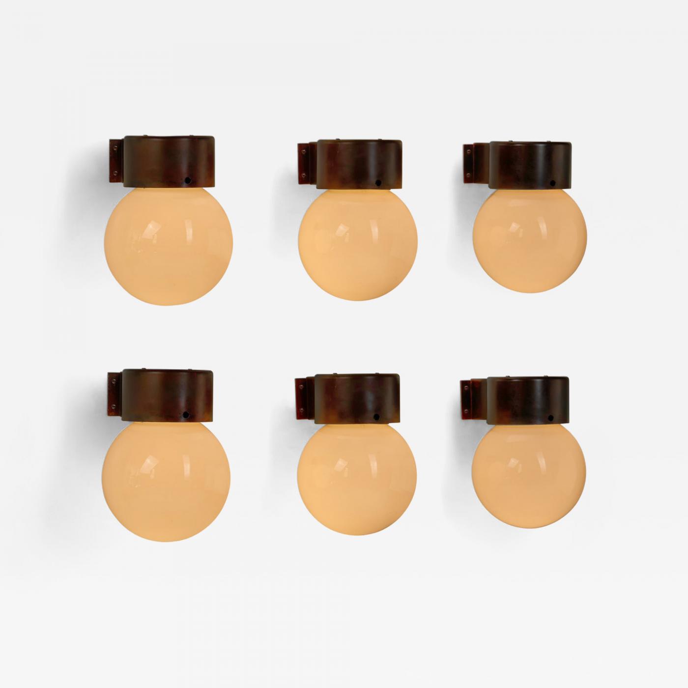 Each lamp features a spherical opaline glass diffuser, designed to soften and disperse light evenly, creating a welcoming glow. The globe is mounted on a cylindrical metal base with a dark finish, offering a striking contrast to the luminous white of the glass. The material showcases the passage of time through the beautiful patina which further highlights each piece’s unique character. When lit, the opaline glass transforms into a glowing orb, perfect for creating ambiance. The spherical form embodies the clarity and purity central to Johansson-Pape’s work, while also reflecting the mid-century preference for modular and versatile designs. Their construction allows them to be mounted in groups or individually, making them highly adaptable to a variety of interior and outdoor contexts, from hallways and stairwells to larger public spaces.