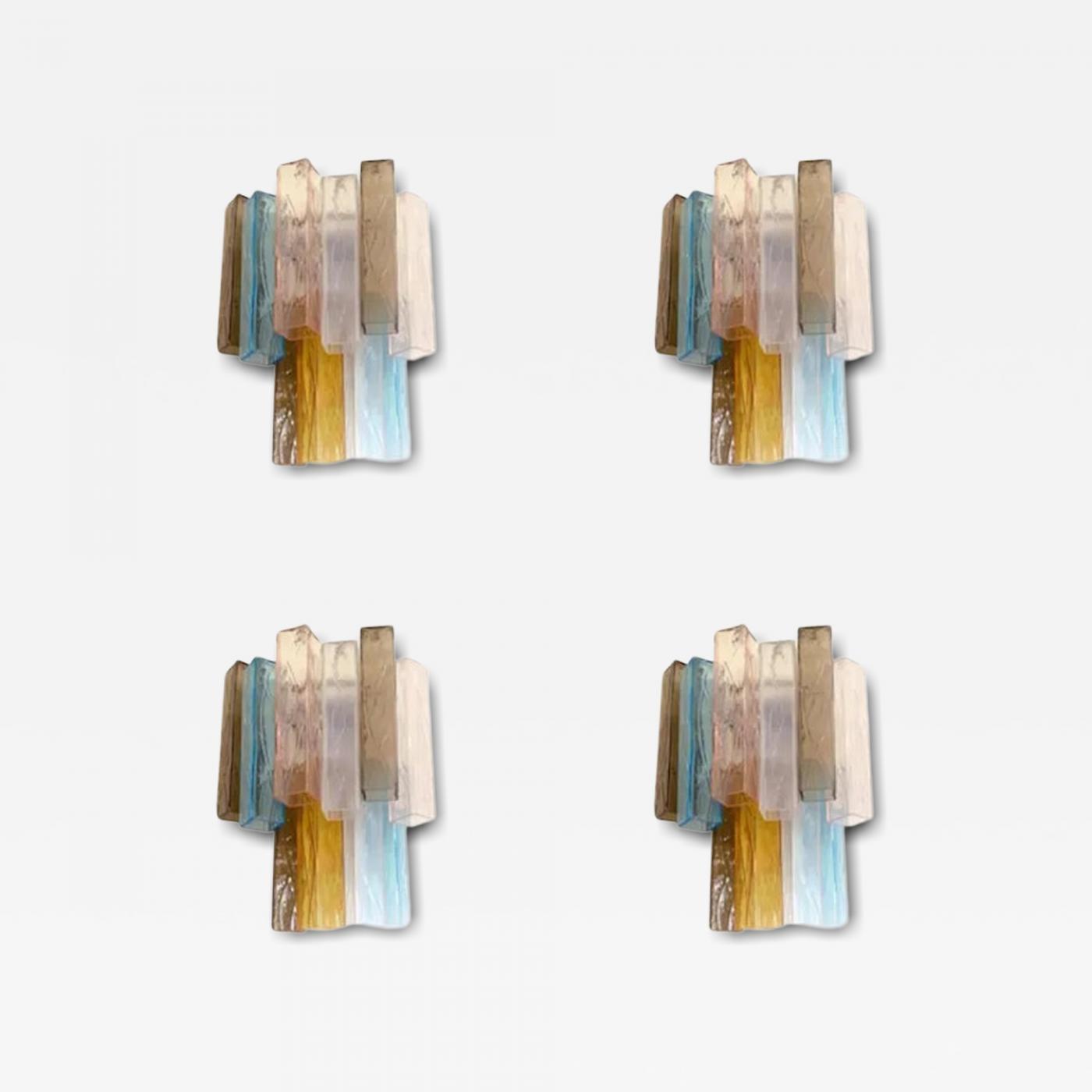 Lot of 4 Wall Sconces 21st Century Multicolored "Squared" Murano Glass