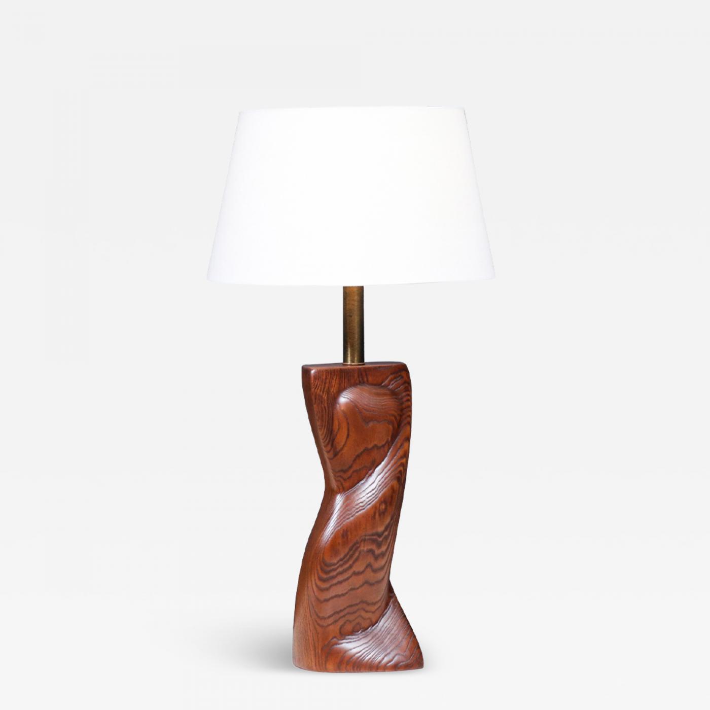 Lynn Lawrence Carved Biomorphic Oak Table Lamp for Modeline of CA