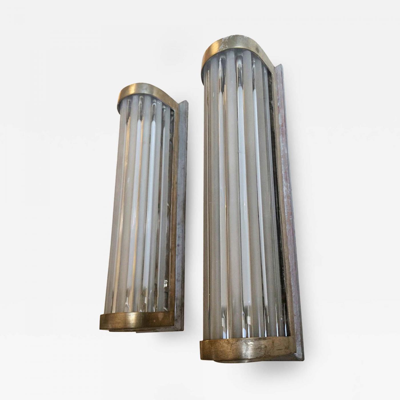 Maison Baguès very rare pair of 40s silver leaf patina sconces with sandblasted glass rod
