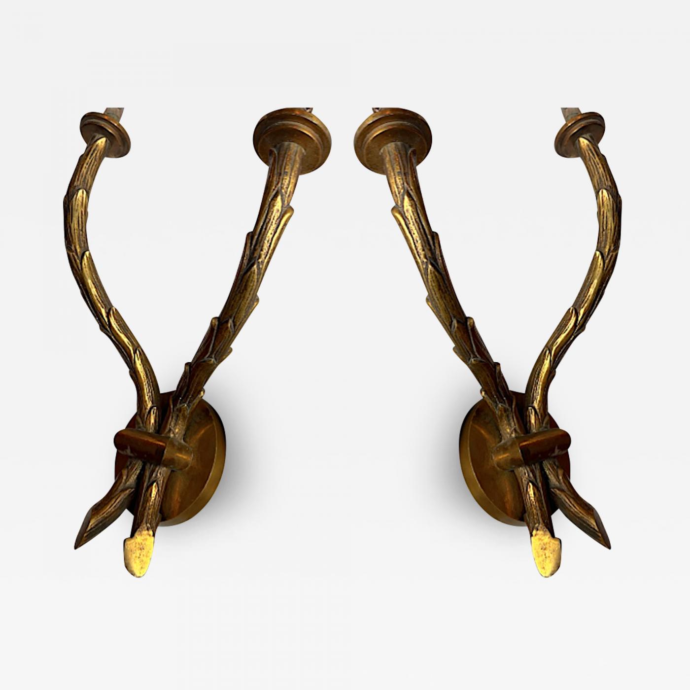 Maison Bagues pair of gold bronze palm tree pair of sconces