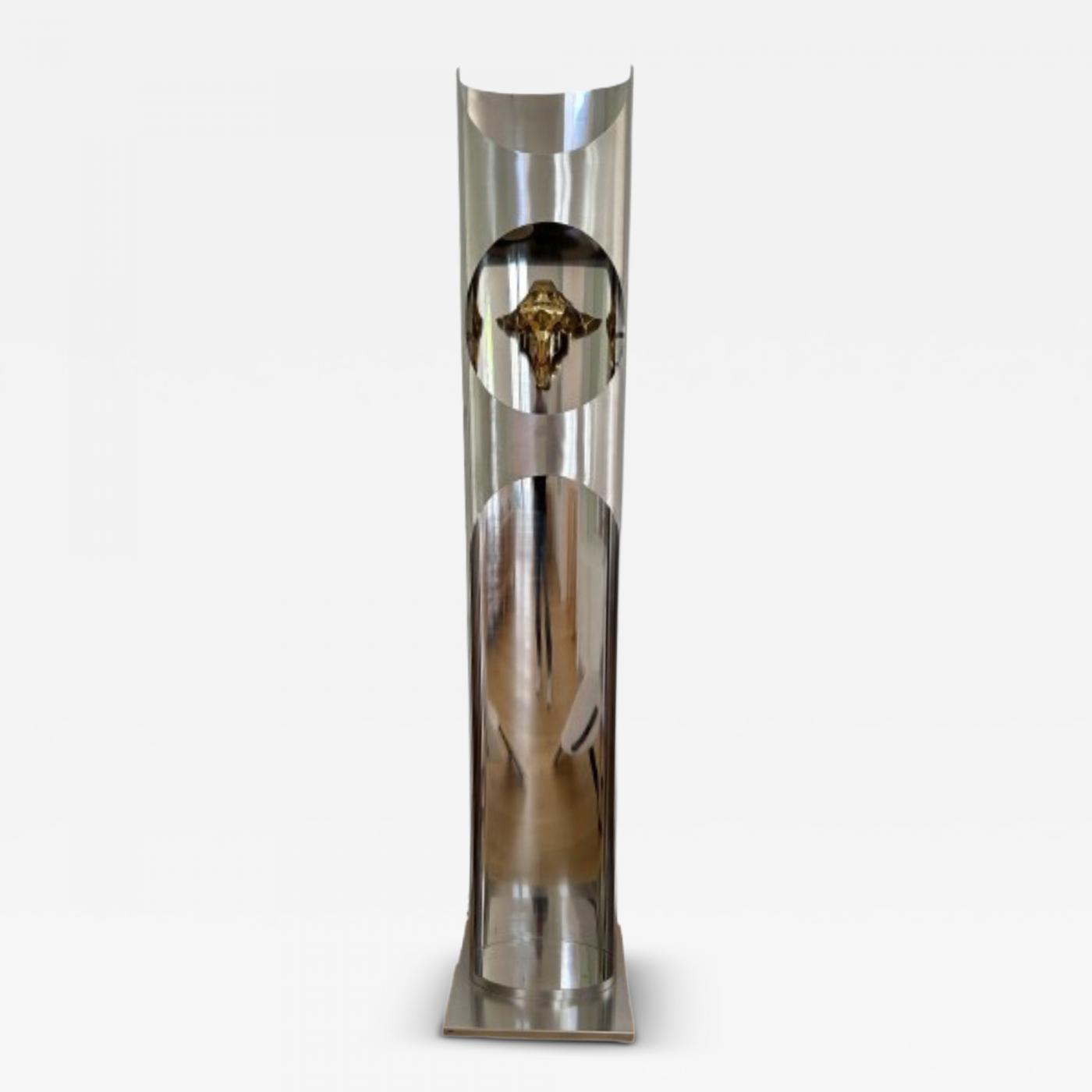 Maria Pergay "Skull' Floor Lamp in Stainless Steel and Bronze