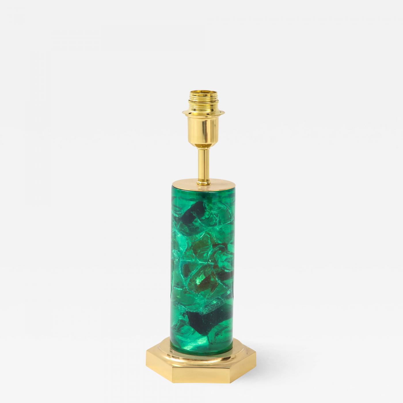 A Single Green Crushed Ice Resin Lamp by Marie-Claude de Fouquieres 1970s