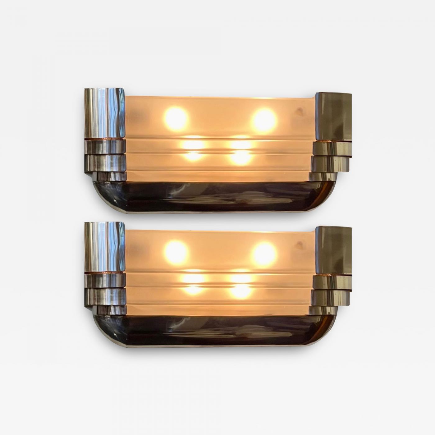 Sabino Art Deco Modernist Stepped Original Chrome Sconces Pair 1930s