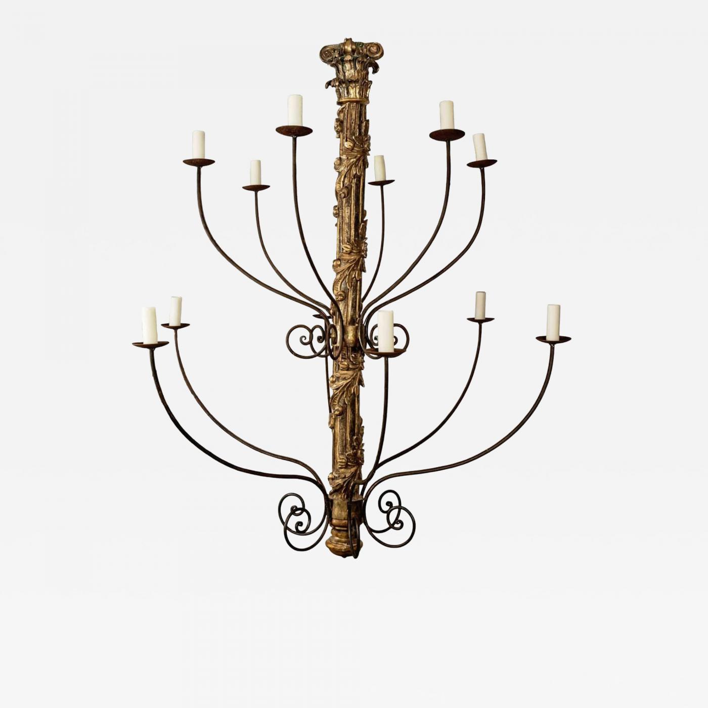 Origin: United States Period: New Materials: Hand-carved giltwood and hand-painted wood, forged iron Condition: Good. Newly constructed chandelier: 18th century hand-carved body with original finish and newly forged iron arms. Newly wired. Includes chain and a canopy (listed dimensions do not include chain). Creation Date: 2025 Styles / Movements: Baroque, Traditional Dealer Reference #: M24.06B Incollect Reference #: 825795 -