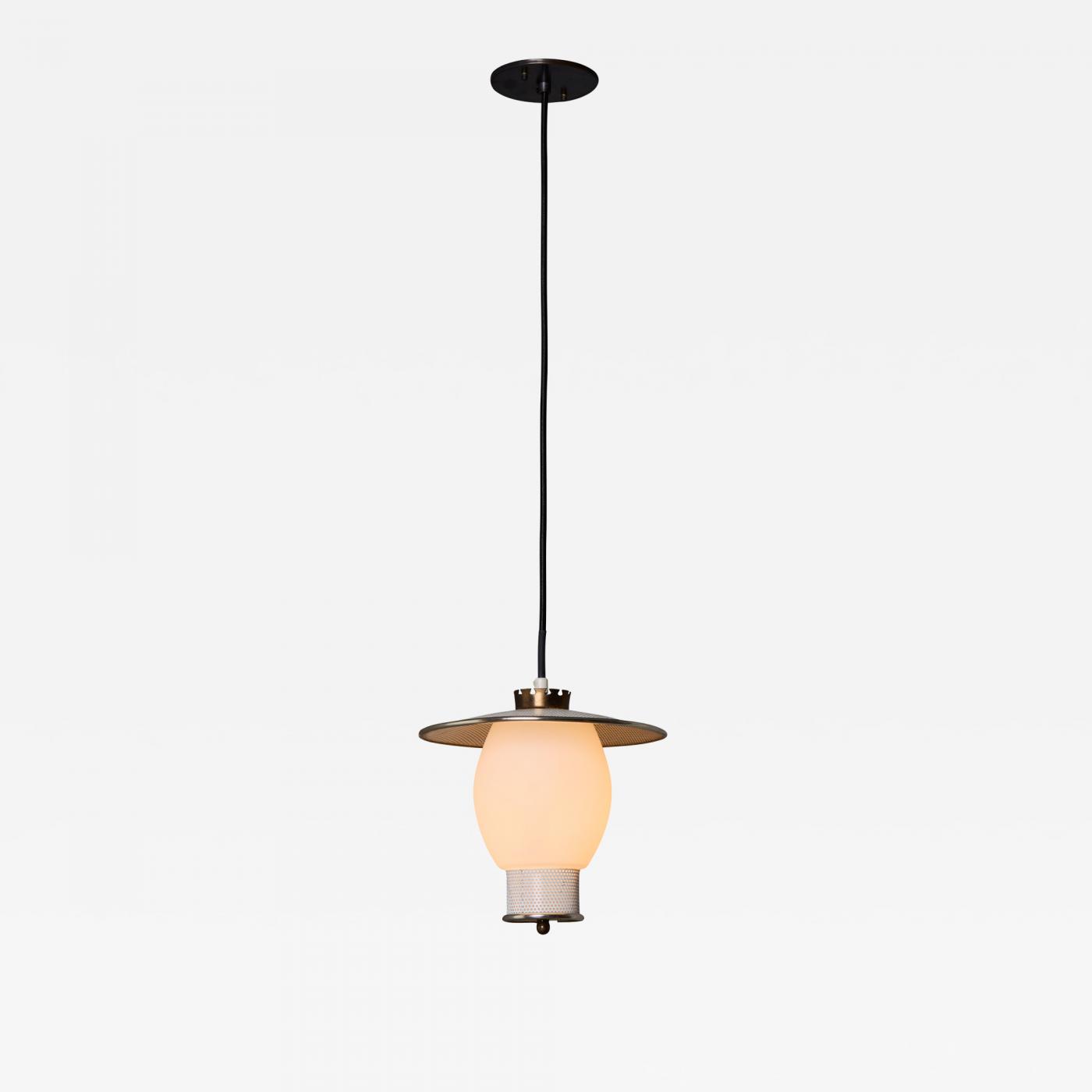 1950s Perforated Metal & Opaline Glass Pendant Attributed to Mathieu Matégot
