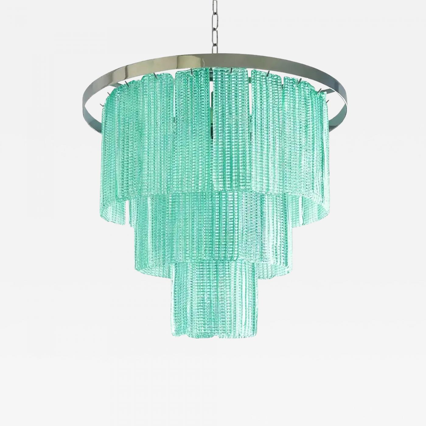 - Monumental Italian Rectangular Strip “Listelli” Murano Glass Chandelier