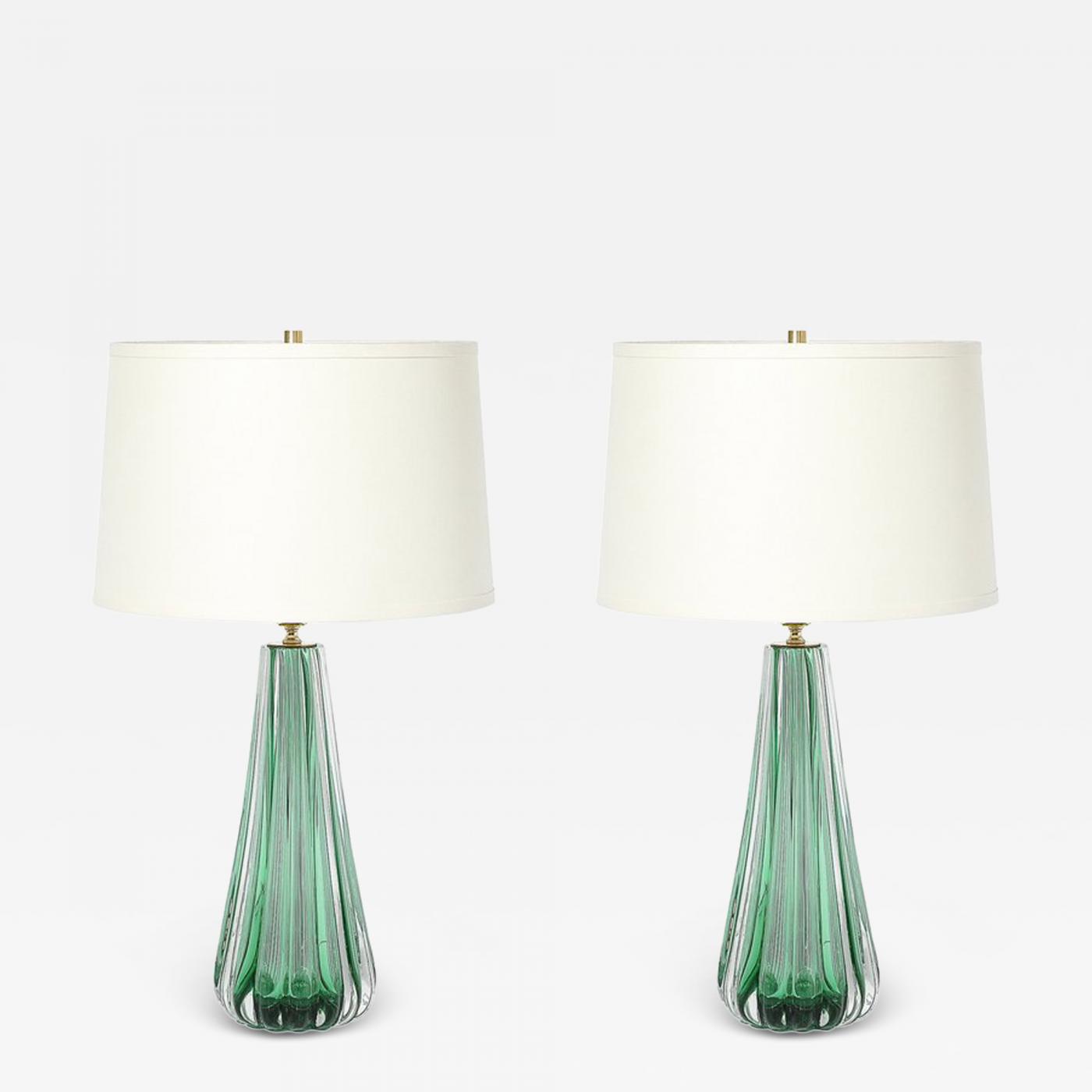 Modernist Hand-Blown Fluted Translucent Sea Green Hue Murano Glass Table Lamps
