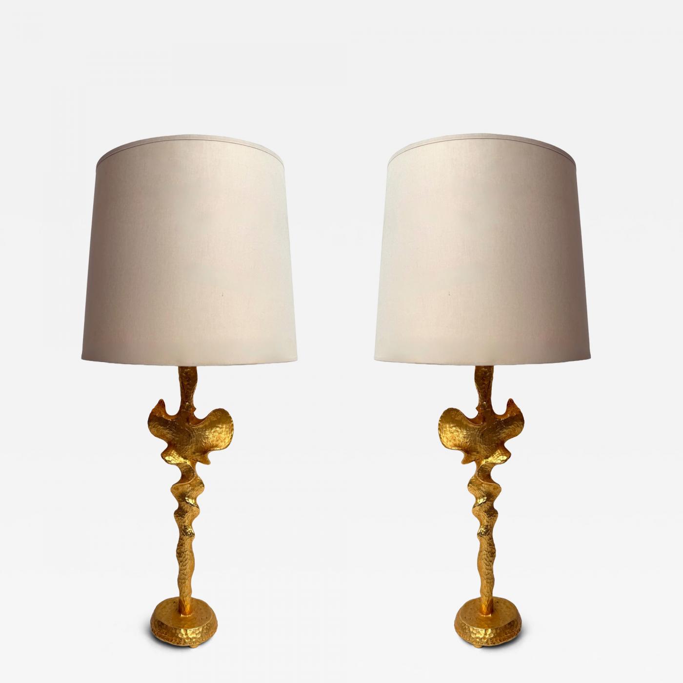 Pair of Lamps Gilt Metal by Nicolas De Waël for Fondica, France, 2000s