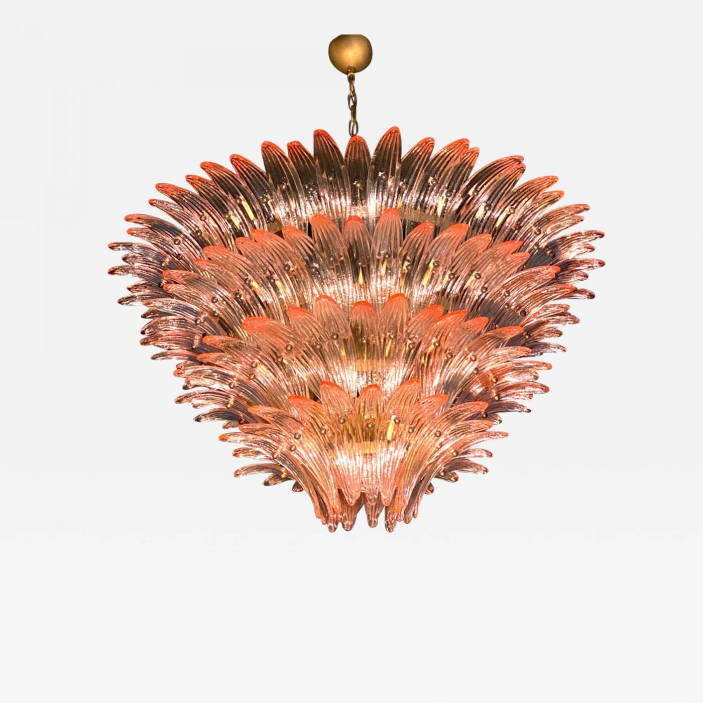 Majestic pink Palmette Murano glass chandelier made with 163 precious glasses on four levels.