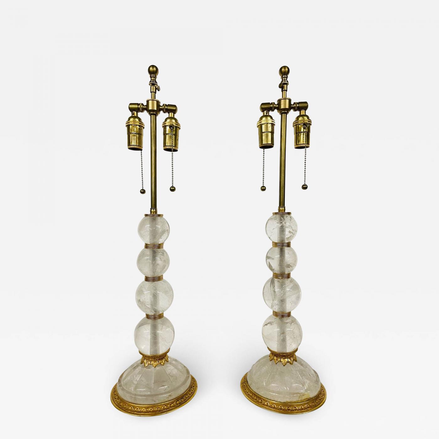 A Pair of Baques Rock Crystal Table Lamps having four circular spheres on a Rock Crystal base all separated by gilt bronze supports. Fine rock crystal on this suburb pair of French table lamps by this highly sought after designer. These are not Chinese reproductions. Several photographs shot directly from Dr. Shawn Garber's home on the Gold Coast of Long Island. Part of an extensive collection seen only in our showroom. Provenance: William Doyle Galleries NYC. The Entire Collection of Mrs. and Dr. Shawn M. Garber NY Leading Bariatric Surgeon IXXX-ISXX
