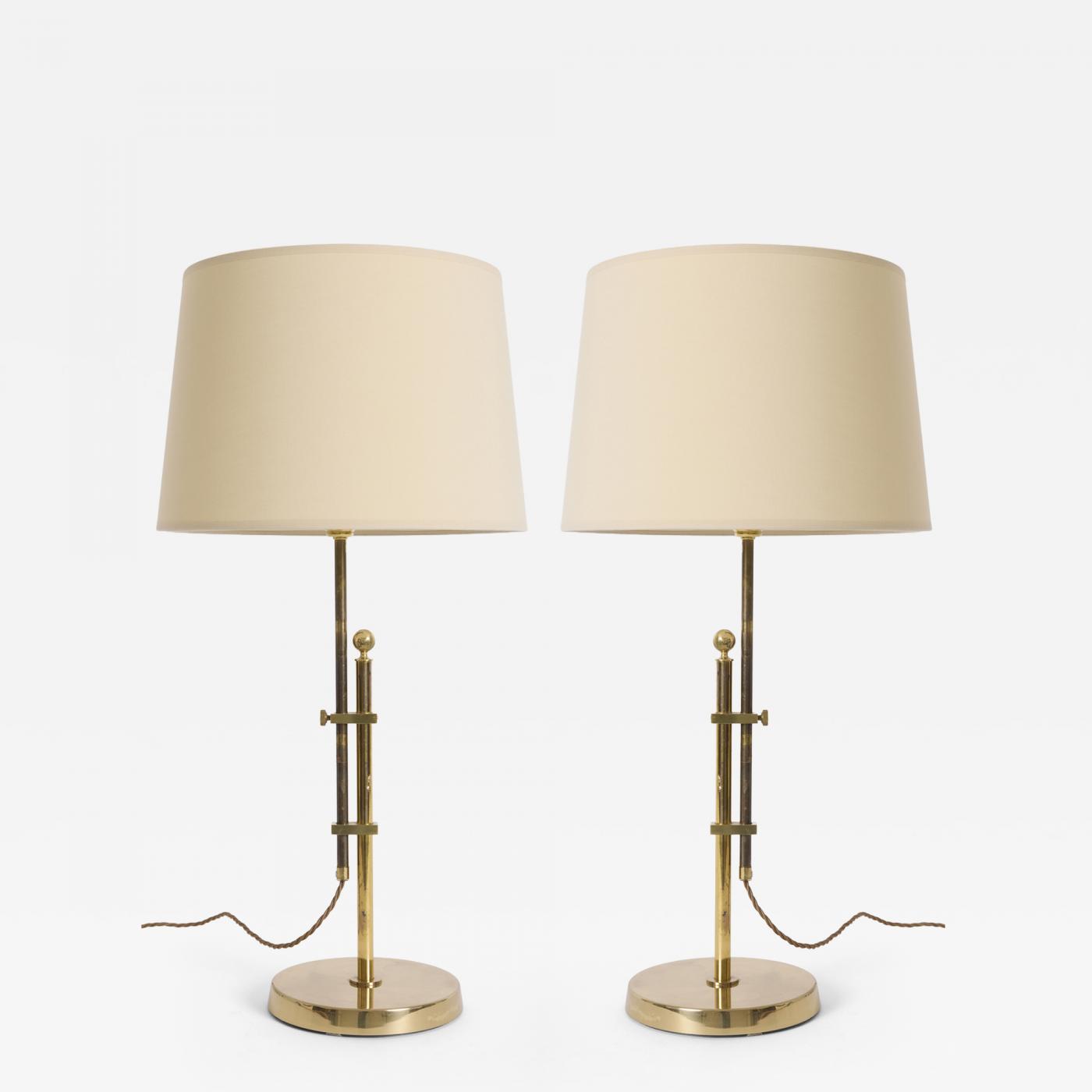 A pair of brass telescopic table lamps by Bergboms